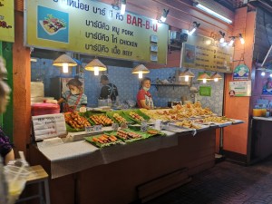 Natürlich hat auch Chiang Mai einen Nightmarket und zwar einen riesigen. Zusätzlich zum täglichen Nightmarket verwandelt sich Samstagabend eine Straße außerhalb der Altstadt in eine sogenannte Walking Street. Auch dort ist dann Markt, der am Wat Sri Suphan, einem komplett mit Silber beschlagenem Tempel, endet. Und Sonntagabend verwandelt sich Chiang Mais Altstadt schließlich in einen kilometerlangen Markt.
