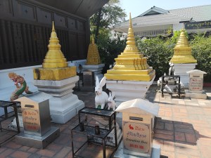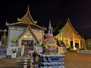 Eine Lanna Tempelruine aus dem Jahr 1441. Auch hier war der bekannte Smaragd Buddha Phra Kaew eine Weile zuhause. In der Nische wo er war, ist jetzt eine Replikation. Der Tempel wurde teilweise zerstört, teils wieder aufgebaut. Ich liebe die großen Elefanten an der Südseite. Nie werde ich meinen ersten Besuch 2015 hier vergessen, als nebenan die Mönche sangen. Unter einem Baum beim Wat Chedi Luang gibt es täglich einen Monk Chat, bei dem man Mönchen Fragen stellen kann. Rund um die Tempel Chiang Mais hängen Schilder mit Weisheiten in den Bäumen, wie zum Beispiel ‚All kinds of liberty are bliss‘ oder so.