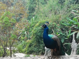 Um den Berg liegt der Nationalpark Doi Suthep und ein weiterer sehr schöner Tempel, der Naturtempel Wat Phalat. Den wollte uns unser Fahrer unbedingt zeigen. Zurecht. Kaum jemand ist hier, ein Pfau, zwei Mönche. Ein paar Wanderer, die zu Fuss zum oben liegenden Doi Suthep Tempel pilgern. Dieser Tempel hier wurde ursprünglich in den Fels gehauen. Es war der Vorgänger bevor der Doi Suthep Tempel gebaut wurde.